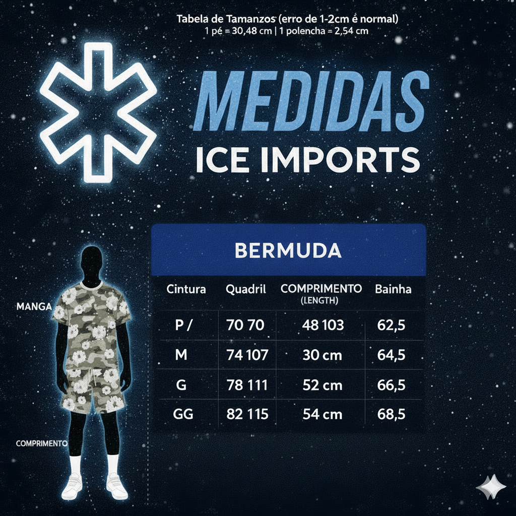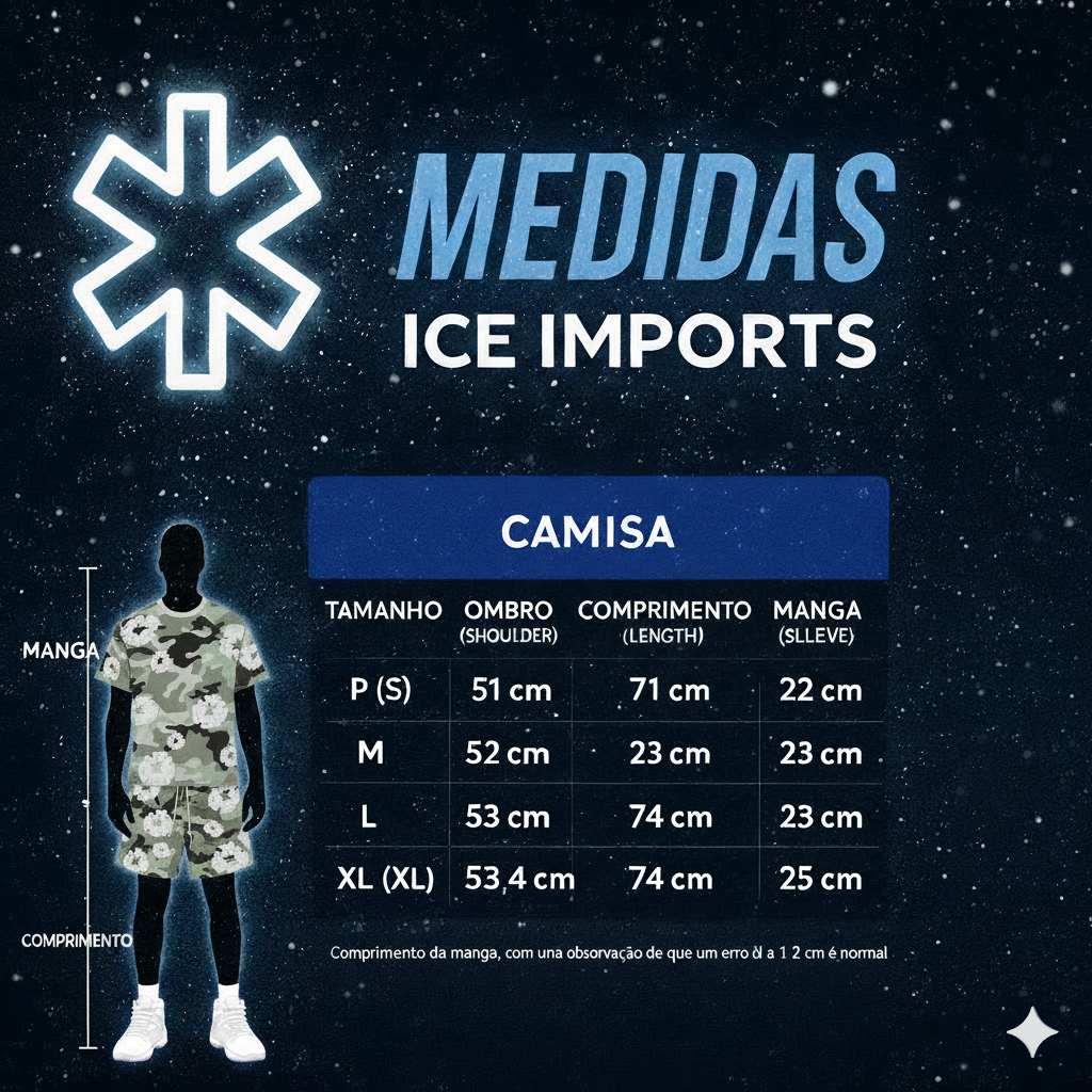 A camiseta apresenta a icônica “Cotton Wreath” distribuída por toda a estampa camuflada, enquanto o short segue o mesmo visual, formando um conjunto harmonioso, moderno e cheio de personalidade. Uma peça para quem busca estilo autêntico e significado por trás do design.